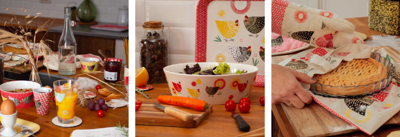 Jedinečný design francouzského kohoutka a slepičky, který pochází z venkovského prostředí dává sortimentu ten pravý nádech odlehlé vísce v srdci francouzské přírody. Ponořte se společně do typického barevného opojení a vychutnejte si s námi tu pestrost nové kolekce.